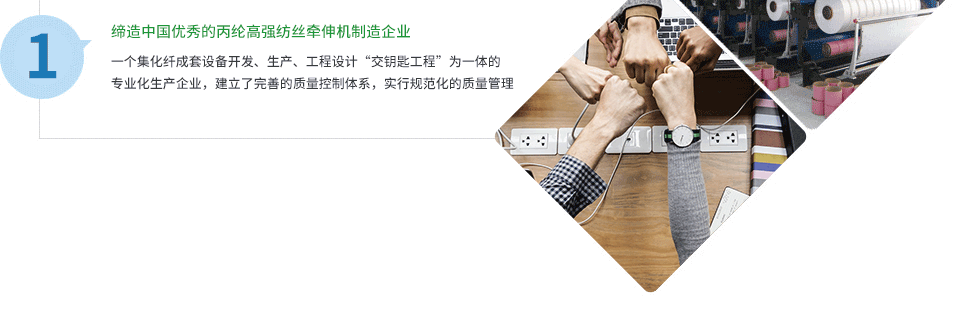 公司致力于制造質(zhì)量上乘的產(chǎn)品,優(yōu)質(zhì)的售后服務。產(chǎn)品為國內(nèi)眾多企業(yè)服務,并遠銷東南亞、東歐及南美。我們期待與海內(nèi)外客戶廣泛合作,共創(chuàng)化纖工程新輝煌。